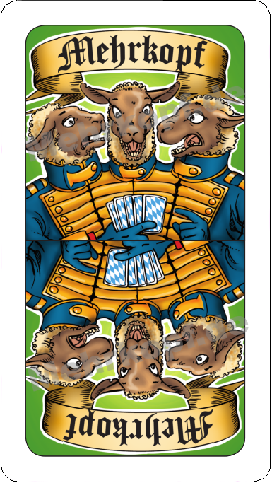 ...ist ein taktisches Kartenspiel, das auf dem klassischen Schafkopf beruht. Neulinge erleben Mehrkopf als ein spannendes und unterhaltsames Kartenspiel für 2 bis 6 Spieler. Kenner des Originals freuen sich über die sinnvolle Erweiterung auf bis zu 6 Spieler mit aufgefrischtem Kartendeck und gleichbleibendem Spielspaß.